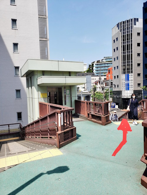 ○歩いていくと歩道橋がありますのでここをあがります。