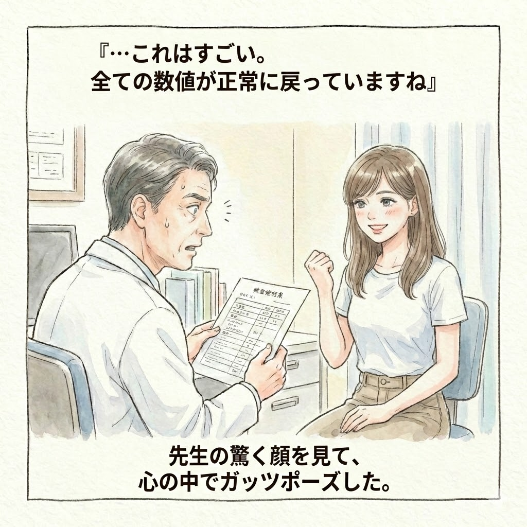 そして迎えた、運命の健康診断の再検査。結果を見た先生は、目を丸くして
