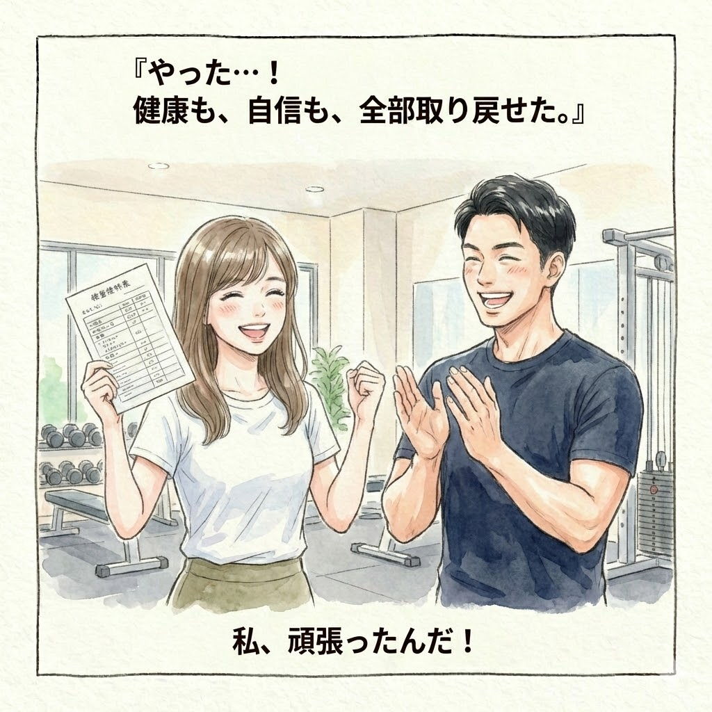 「年々、健康診断の結果を見るのが怖くなってきた…」 「『年齢のせいだから』と、どこかで諦めていませんか?」 これは、そんな悩みを抱えていたある女性が、パーソナルジムBodyMentoringStudioと出会い、ダイエットに成功させて人生を変えた実話の物語です。