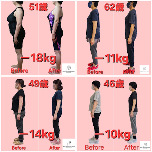実際に当ジムで-20㎏以上のダイエットに成功された50代の方もその後3年ほど体型をキープ中です。
