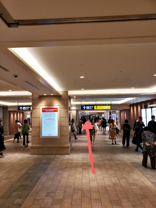 ○JR横浜駅の中央北改札か中央南改札を出ます。(どちらも同じ通路に出ます)
