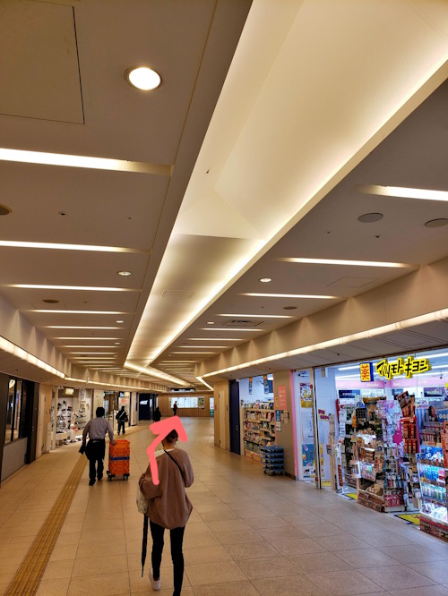 ○マツモトキヨシの前を過ぎ、突き当たりまで真っ直ぐ進みます。
